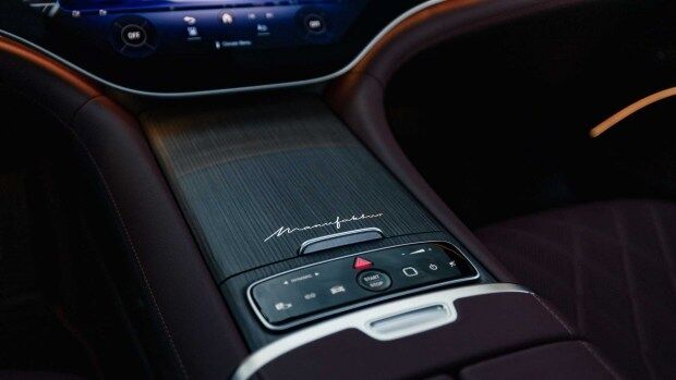 При створенні Mercedes-Benz EQS Manufaktur Signature Edition виробник приділив виняткову увагу інтер’єру. Унікальна деталь салону — глянсовий хромований напис «Manufaktur» на центральній консолі.