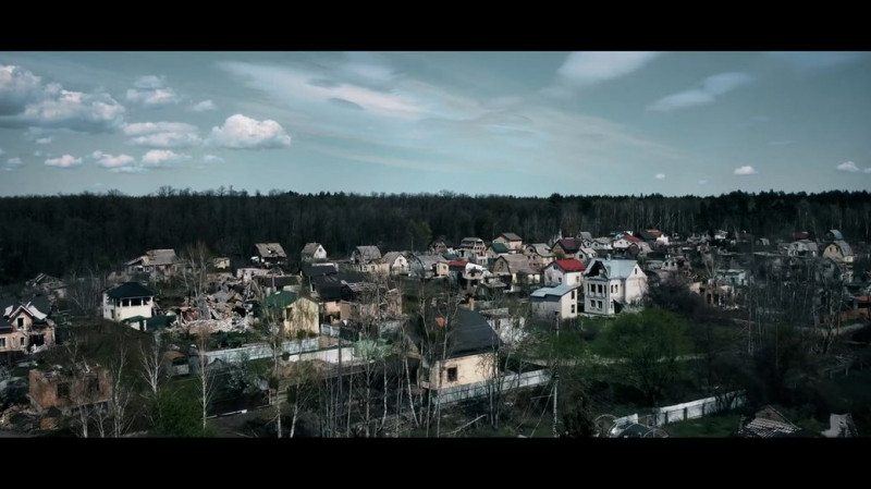 Зруйновані росіянами українські села. ФОТО: скрін з фільму “Потерь нет”