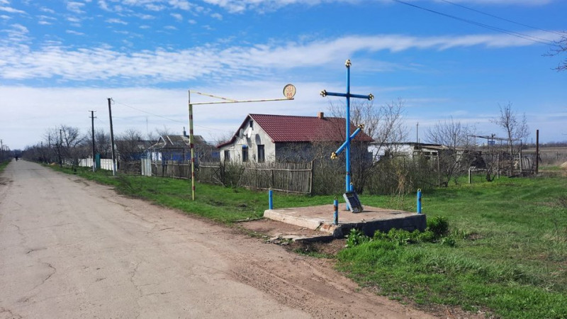 Хрест на в’їзді у село Квітневе. Фото: Назарій Рубаняк/Суспільне Миколаїв
