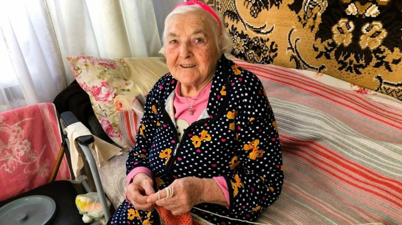 Мешканка Миколаївського геріатричного пансіонату. Від початку повномасштабного вторгнення військ РФ на територію України пансіонат не припиняв своєї роботи. Тут перебуває 121 людина, здебільшого лежачі підопічні. Вони отримують медичну та психологічну допомогу. Фото: Валентина Гурова/Суспільне Миколаїв