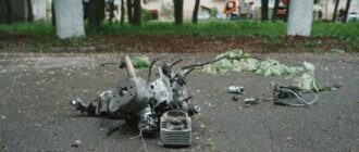 “Сам носій – БпЛА “Молнія” – впав на дах гуртожитку в Київському районі. Бойова частина впала поруч із будівлею, на місці працюють вибухотехніки”, розповів Терехов.