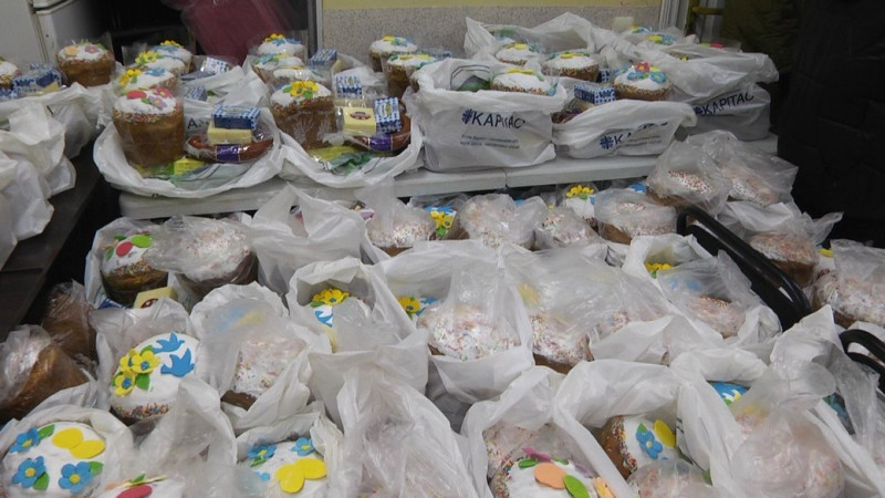 450 продуктових зібраних наборів до Великодніх свят соціальні працівники розвезуть людям, які цього потребують, розповідає соціальна працівниця благодійного фонду «Карітас-Хмельницький» Олена Венгер. Також, за її словами, такі набори отримають одинокі люди похилогу віку з проєкту «Домашня опіка». До набору, каже, входять паска, сир, ковбаса, масло і яйця.