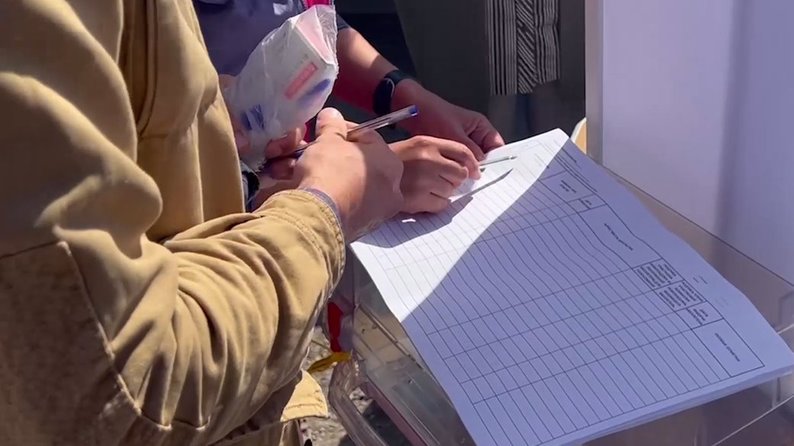 “Виїзна дільниця” псевдореферендуму на ринку Херсона, 23 вересня 2022 р. Фото: скрін відео росЗМІ.