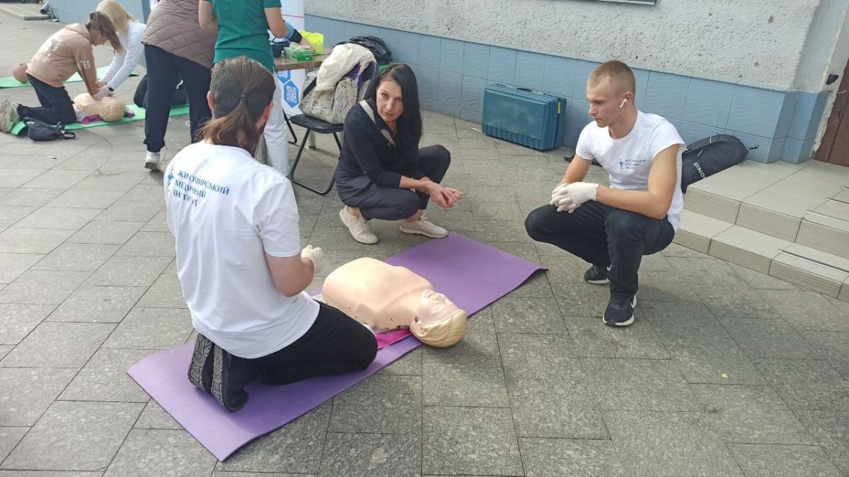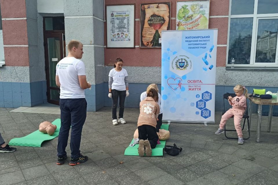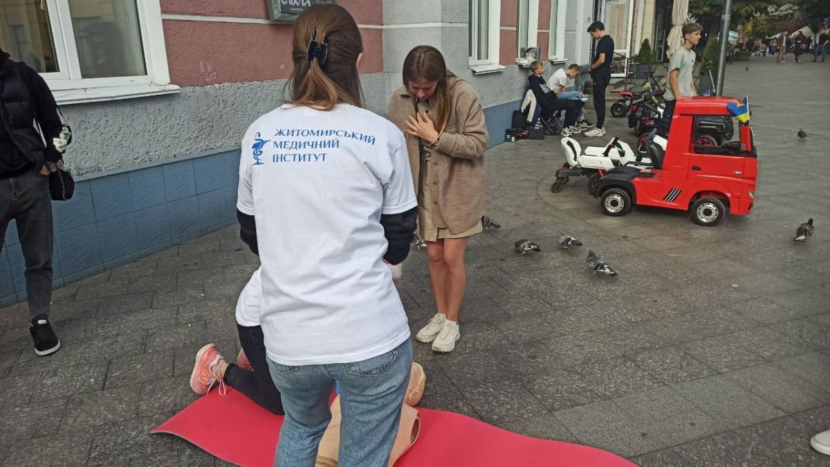 Представники Житомирського медичного інституту навчали сьогодні всіх бажаючих основам першої медичної допомоги на вулиці Михайлівській в Житомирі.