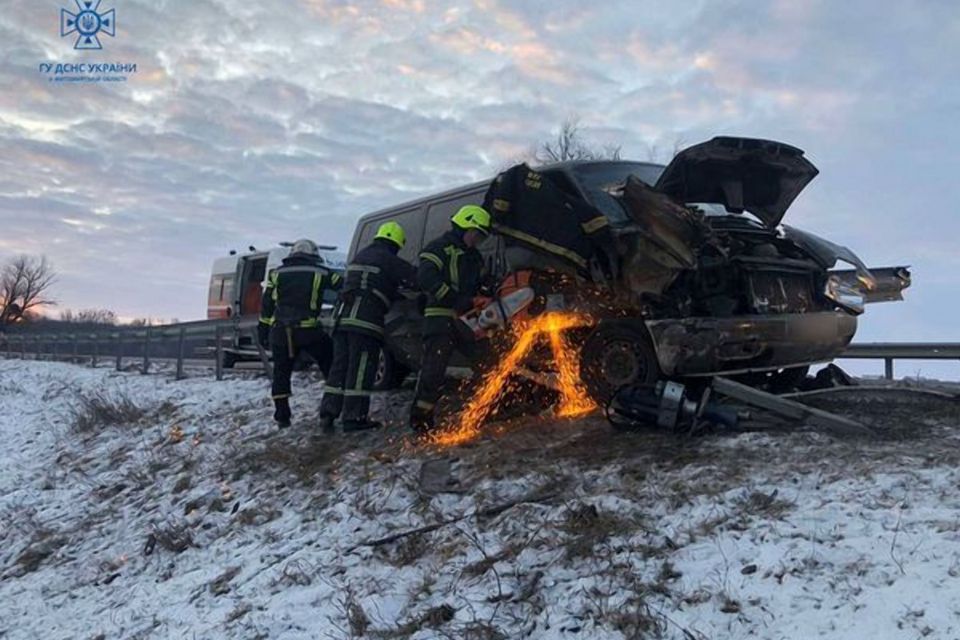 Автомобіль в’їхав у відбійник. Пасажира затисло понівеченими конструкціями автівки. В чоловіка переламані обидві ноги. Медики каретою швидкої транспортували його до лікарні.