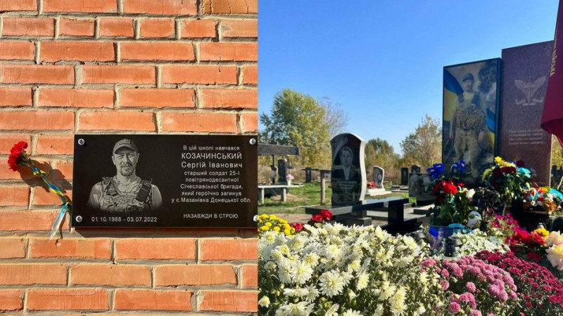 Меморіальну дошку загиблому під час російсько-української війни бійцеві Сергію Козачинському відкрили у Карлівці.