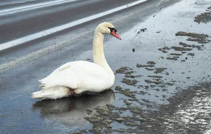 На трасі «Ковель – Ягодин» патрульні помітили лебедя, який перебував у виснаженому стані та майже не рухався.
