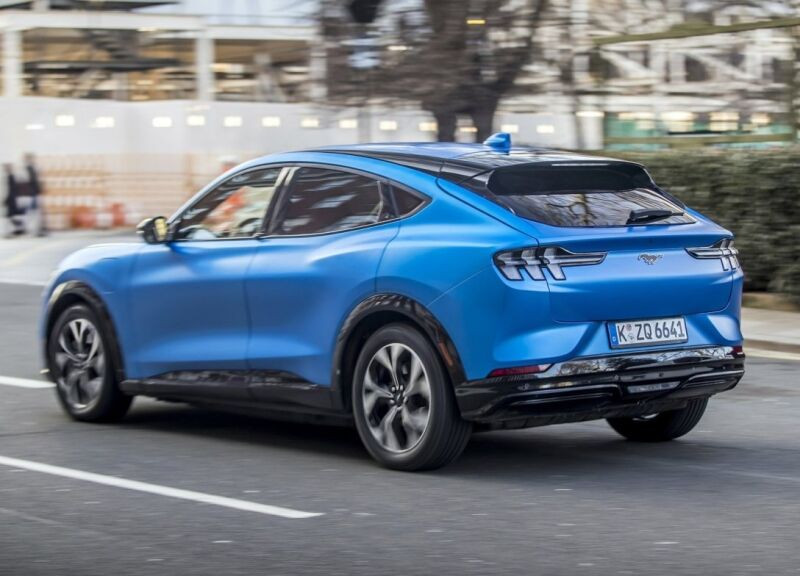 Електромобіль Ford Mustang Mach-E — п’ятимісний 4,7-метровий кросовер з обтічним силуетом. У його дизайні присутні риси бензинового купе Ford Mustang, а в салоні встановлені віртуальний щиток приладів і великий портретний тачскрін із діагоналлю 15,5 дюйма. У авто два багажники — 402-літровий задній і 81-літровий передній.