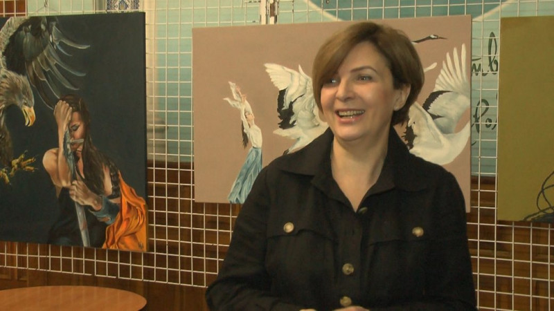 Над картиною “Лелеки”, каже Ірина Жара, почала працювати ще до війни. Суспільне Хмельницький