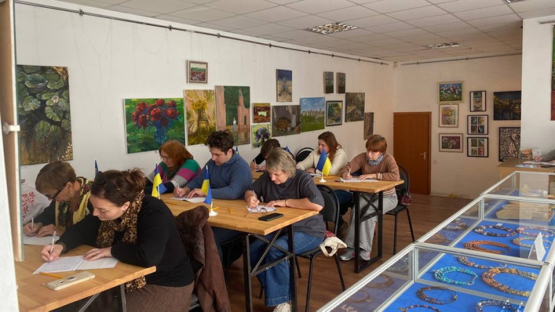 Лідія Голубкова долучилась до написання диктанту національної єдності, 27 жовтня 2025 року, Хмельниччина. Суспільне Хмельницький