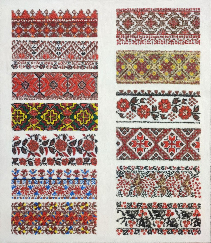 Одна з картин “25 узорів”, де представлені орнаменти регіонів України та АР Крим, грудень 2025 року, Хмельниччина. Оксана Жураковська