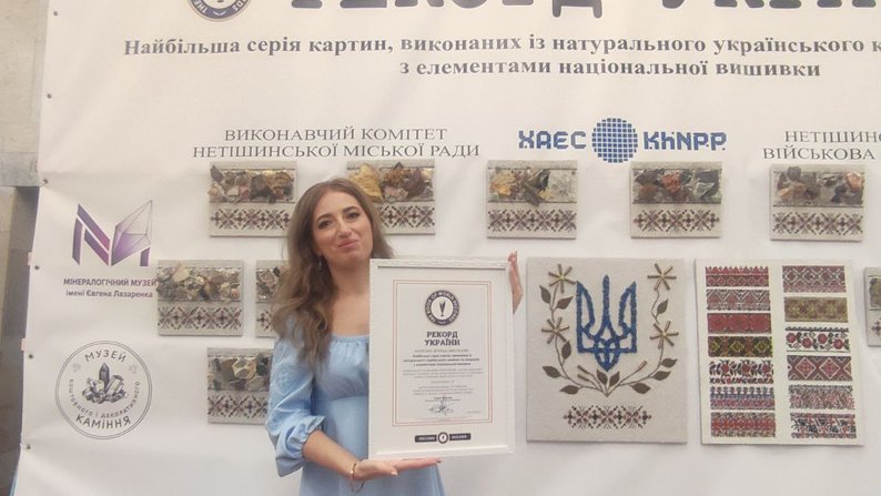 Сьогодні, 18 грудня, у Нетішині, що на Хмельниччині, встановили рекорд України у номінації: "Найбільша серія картин, виконаних із натурального українського каміння та мінералів з елементами національної вишивки", представивши експозицію робіт "Українська вишивка вічності" місцевої майстрині Оксани Жураковської.