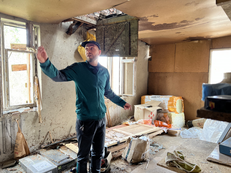 "Мені телефонує орендар і говорить: «Саша, приліт». Я запитую, чи все добре, чи ви живі. І вони кажуть… Він відбився, він побіг. Потім я уже в соцмережах побачив фотографії, виставив, тому що мені постійно дзвонило багато друзів, казали: «Сашо, в тебе там жах, чим тобі допомогти, дай номер карти, дай щось». Я не міг чисто фізично кожному відповісти", — розповів власник пошкодженого будинку Олександр Глазов.