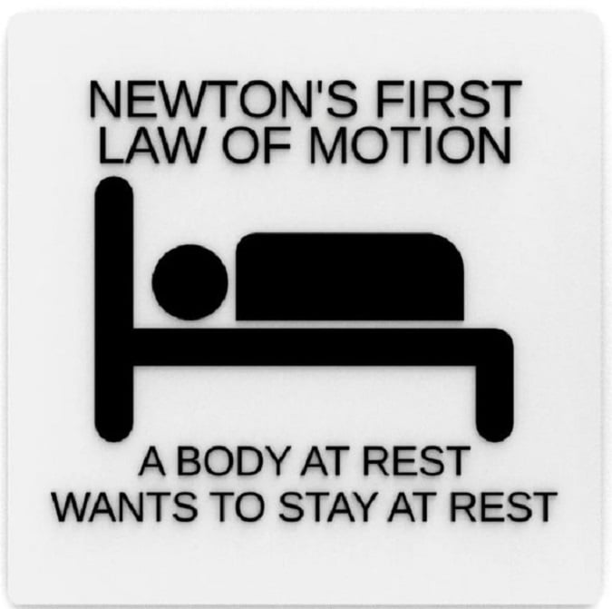 «Перший закон Ньютона: a body at rest wants to stay at rest», тобто тіло, що перебуває у стані спокою, прагне в ньому залишатися