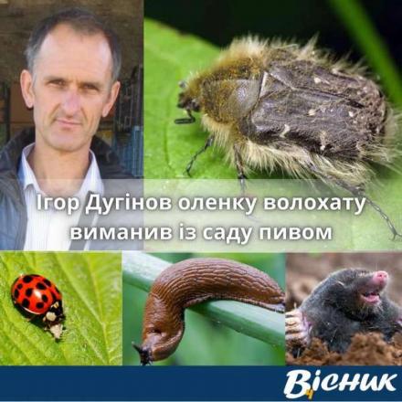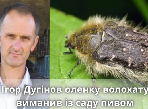 — Об’їдала оленка волохата (вона ж бронзівка) в мене весь цвіт у саду. Зав’язі майже не було. Вирішив і її виманити пивом. Вийшло.