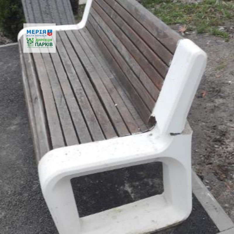 Інцидент стався на території парку «Сосновий бір», де невідомі особи зруйнували лавку поблизу центрального озера з Русалонькою, повідомляє КП «Дирекція парків».