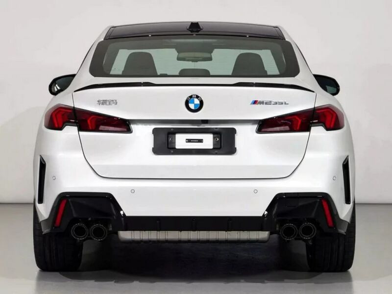 Заряджена версія BMW M235 Gran Coupe має виразніший дизайн. До того ж, вона отримала задній спойлер та чотири вихлопних труби.