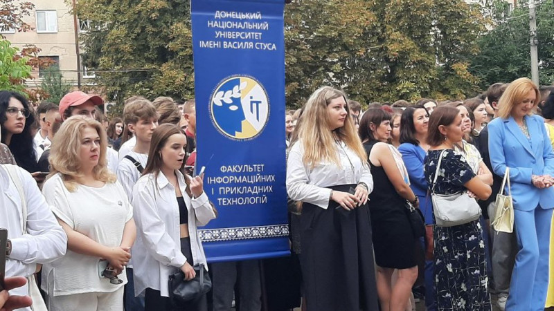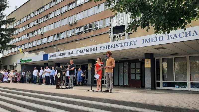 З 1-го вересня стартував навчальний рік і у Донецькому національному університеті ім. Василя Стуса. Тут святкову лінійку теж розпочали із хвилини мовчання за загиблими у російсько-українській війні. Новий навчальний рік стартує офлайн, розповів декан одного з факультетів Олександр Шендрик. У тих, корпусах, де укриттів немає – будуть користуватися тими, що поруч. До кінця вересня триватиме дозарахування на платну та заочну форми навчання. Всього у закладі вищу освіту здобуватиме майже тисяча студентів.
