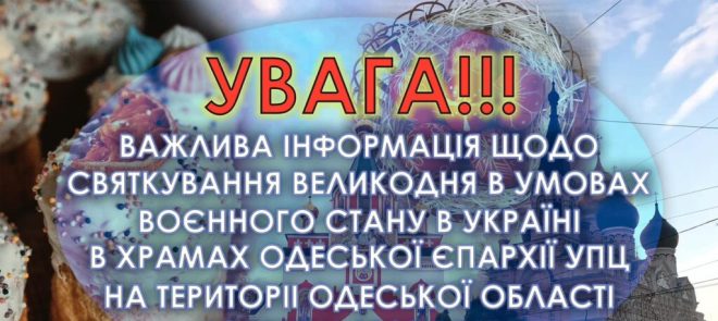 У день світлого Христового Воскресіння – Великдень, у зв’язку з комендантською годиною та наполегливими рекомендаціями правоохоронних органів регіону, у всіх православних храмах міста та області, Великодні Богослужіння відбуватимуться в сам день свята Світлого Христового Воскресіння 16-го квітня о 6:00 ранку.