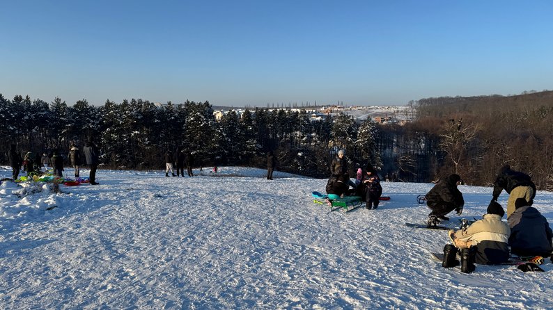 Жителі обласного центру катаються на “Ведмежій горі”, січень 2026 року, Хмельницький. Суспільне Хмельницький