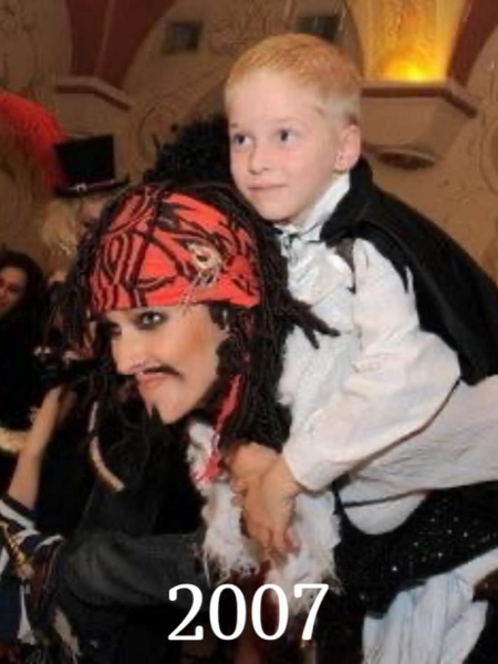 «Гелловін історія в моїх костюмах. На другому фото ще зовсім малий Ілля (син від першого шлюбу — ред.) і я Джек Горобець Потім були мавки, маліфісенти, аніме і ще багато всього, але найголовніше що ці фото це таку екскурсія в часи, коли ми всі були іншими», — підписала Осадча.