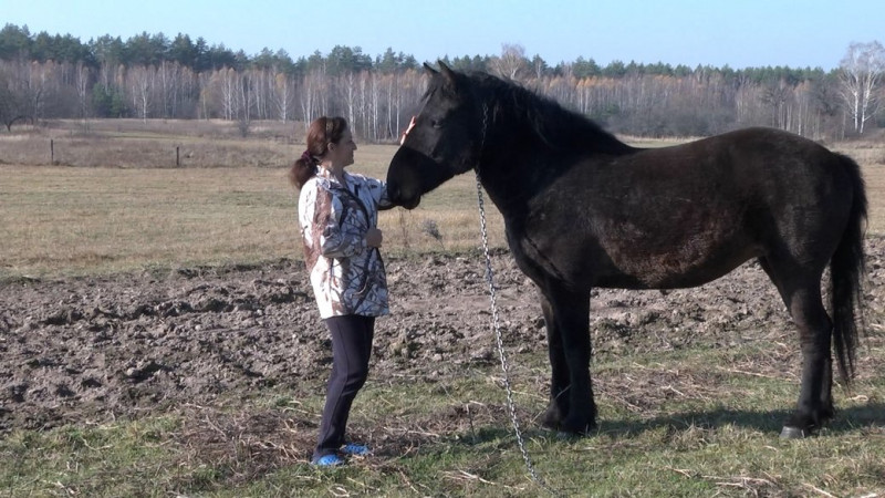 Ірина зі своїм конем у Ясній Поляні у листопаді 2021 року. ФОТО: Суспільне Чернігів