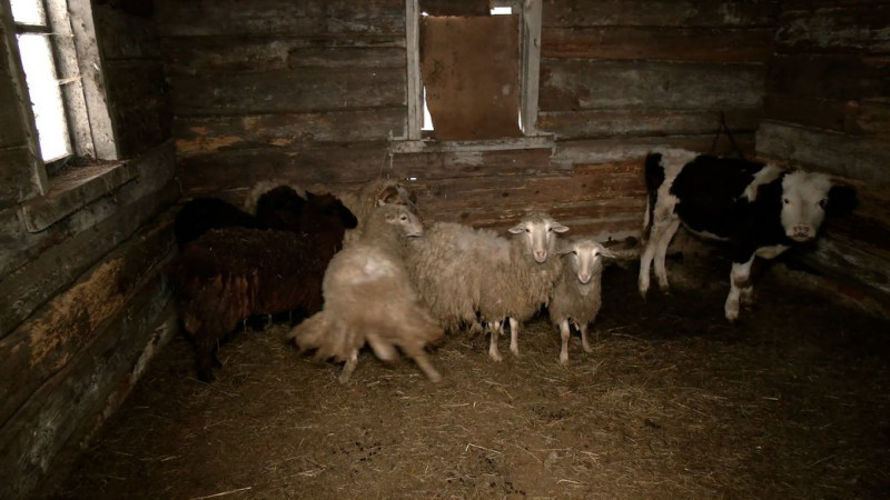 Вівці та теля переселенців Іринина та Володимира. ФОТО: Суспільне Чернігів"Дуже сильні обстріли почались: вікна вилетіли, стеля лопнула – просто вже нереально стало там лишатись. Розбомбили, що десь два тижні електрики не було. У нас вдома свердловина 59 метрів, то під обстрілами воду возили", – говорить Ірина Синєгуб.