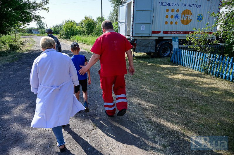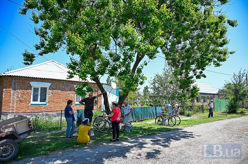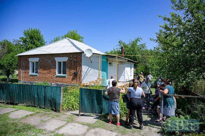 Лікарі починають приймати – вони довго їхали з Харкова (по вже згаданих ямах, що правлять тут за дорогу від Ізюма). Тим часом людей у дворі амбулаторії стає ще більше.