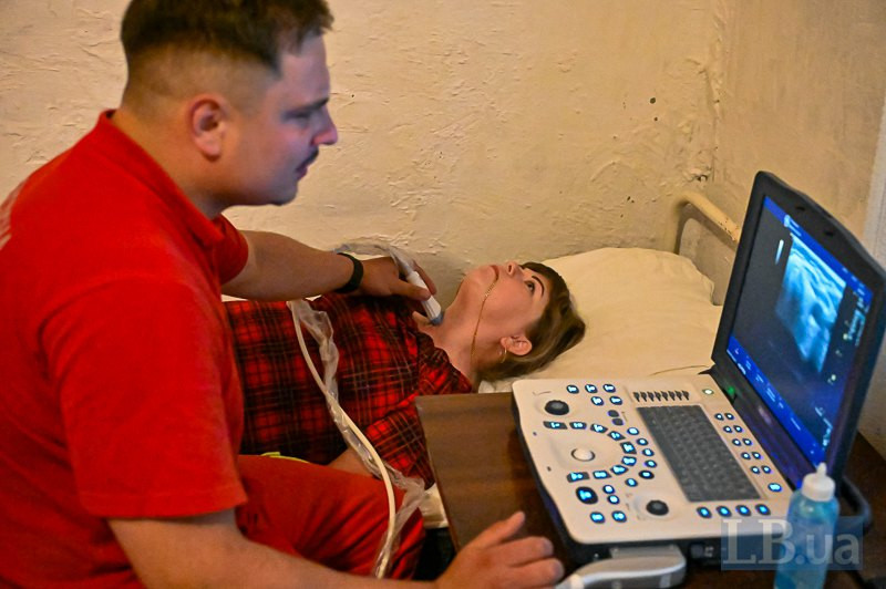 Сьогодні на прийомі комбінована бригада. Лікар УЗД Олексій Кохан. Він також працює у Центрі екстреної меддопомоги Харківської області – анестезіологом на швидкій. УЗД, каже, його хобі: “Курси пройшов, навчився, їздимо і робимо”.