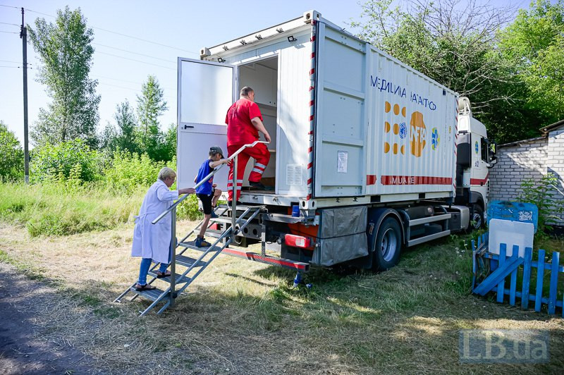 Потреба в медичній допомозі тут величезна, – говорить лікар-гінеколог Віталій Кучер. – Люди повернулися, але немає транспортного сполучення, складно з фінансами. Тому нас дуже радісно зустрічають кожного разу. Наша бригада називається “Мобільний пологовий будинок”, але пологів ще не приймали. Найчастіше ведемо консультативний прийом. Така собі поліклініка на колесах.