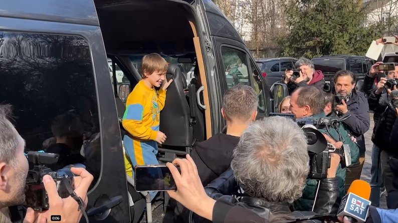 Україна. Хлопчик, якого повернули з “оздоровлення” в тимчасово окупованому Криму виходить з евакуаційного автобуса, 22 березня 2023 Скрін відео Save Ukraine/Facebook