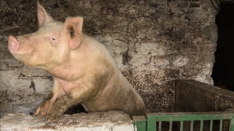 У неоготичній будівлі зробили хлів — там живуть свині, листопад 2025 року, Хмельниччина. Суспільне Хмельницький