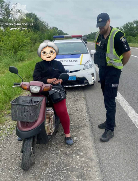 Днями під час патрулювання на трасі інспектори помітили на узбіччі жінку похилого віку біля скутера.