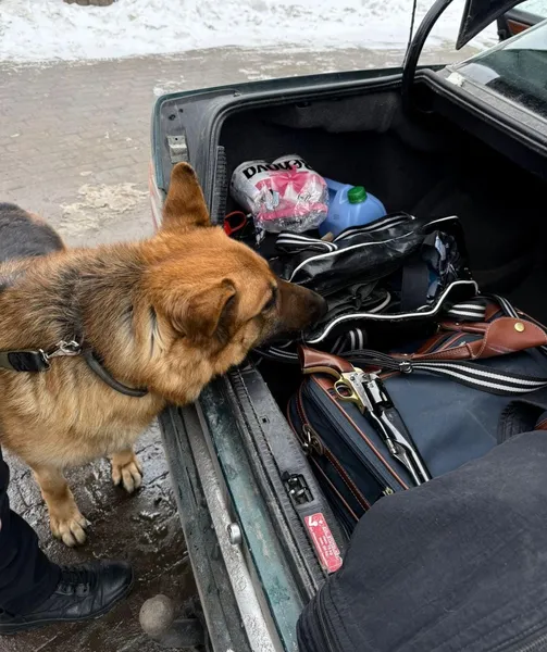 Там же, у «Шегинях», службова вівчарка на ім'я Райз, натренована на виявлення зброї, позначила автомобіль Mercedes. Усередині прикордонники знайшли револьвер-репліку під старовинну зброю XIX століття. Водій слідував у Польщу зі Львова.