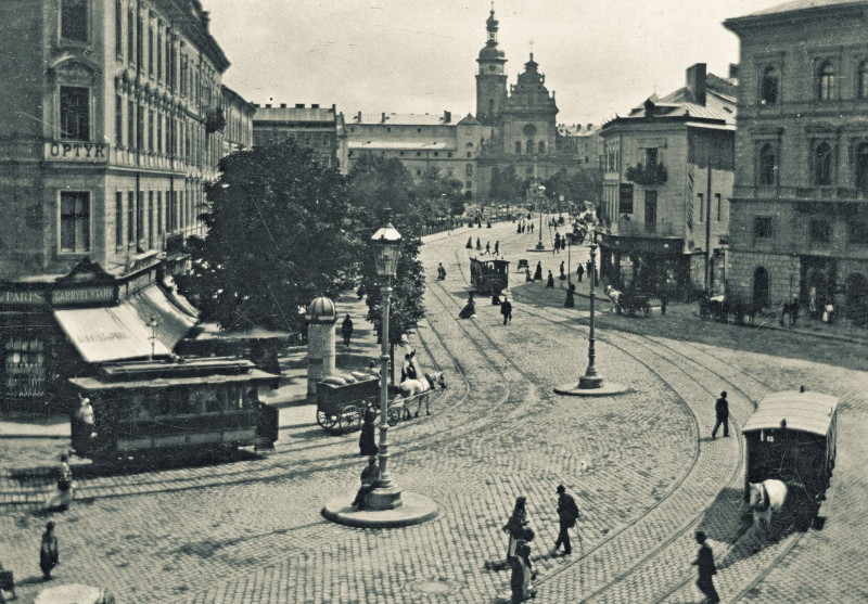 На той час трамвайної колії тут вже не було, бо її відрізок від церкви Святого Миколая вулицею Б. Хмельницького до залізничного переїзду ліквідували 1908 року, а натомість провели вулицею Замарстинівською під залізничний міст, де вона функціонує донині.