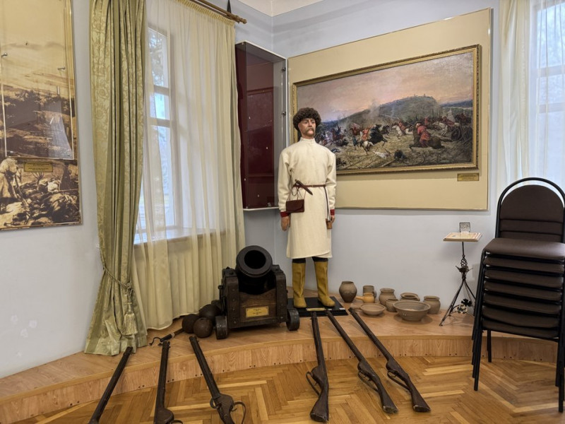 "Вона (ред. – козацька рушниця) гвинтувальна, тобто ствол нарізний, з нього влучно можна було стріляти. Саме отакими мушкетами користувалися запорожці тут під Полтавою 1709 року, коли вони знаходилися в облогових траншеях під Полтавою разом зі своїми союзниками-шведами. Вдень запорожець-снайпер вбивав по кілька московитів з отакої ось рушниці гвинтувальної", — прокоментував науковий співробітник Сергій Макаренко.