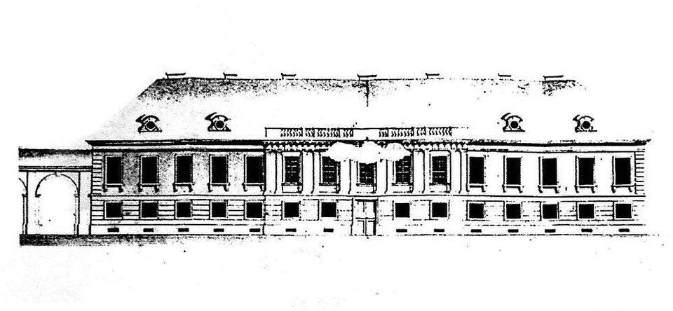 2. Перший палац звели в стилі класицизму за проектом архітектора Ігнатія Хамбреза. Це була двоповерхова прямокутна будівля із високим дахом. Фасад симетричний з центральним ризалітом, увінчаним аттиком з балюстрадою. Власниками палацу були Марія з Сангушків та її чоловік Альфред Юзеф Потоцький. Проте графу була потрібна презентаційна резиденція у Львові, тож будівлю старого палацу розібрали у 1860-1861 роках.