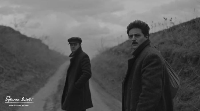 Фото: Аркадій Любченко (Роман Халаїмов) та Микола Хвильовий (В’ячеслав Довженко). Кадр з фільму «Будинок «Слово»: Нескінчений роман»