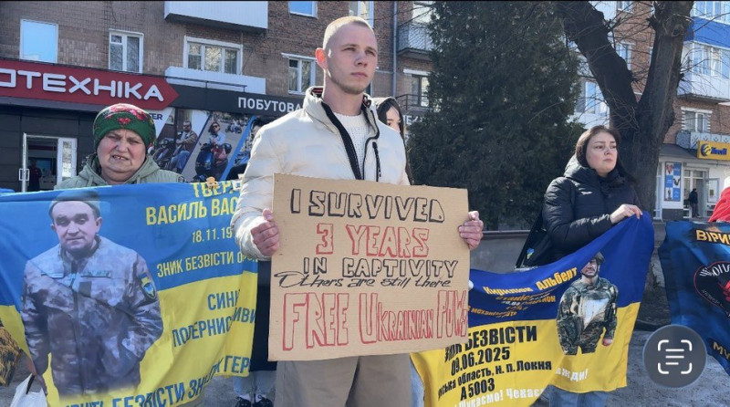 Колишній військовополонений Дмитро Пазін розповів, що долучився до акції, щоб підтримати родини, які чекають. Він три роки перебував в російському полоні.