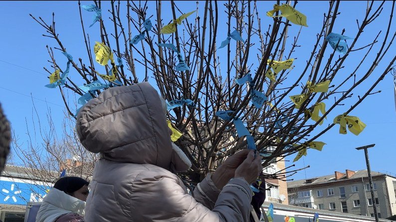 З її слів, під час акції учасники писали імена рідних на жовто-блакитних стрічках, які повʼязали на "Дерево надії".