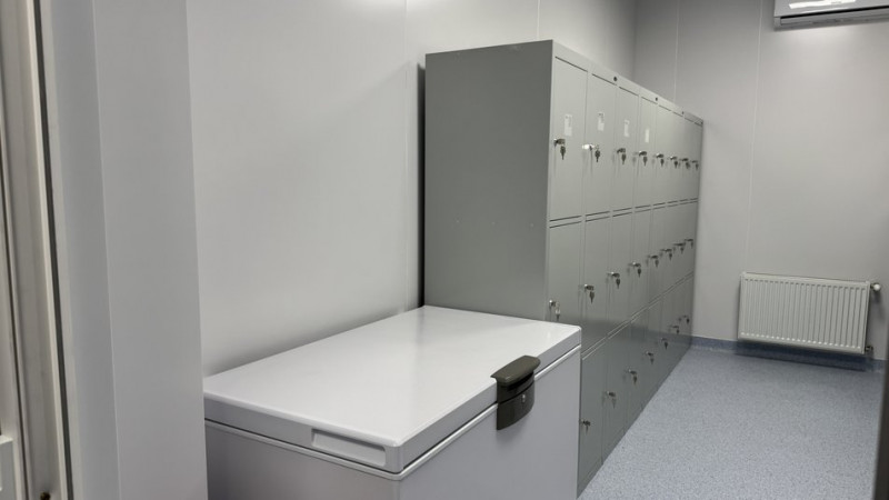 Кімната для зберігання об’єктів дослідження, у якій є морозильні камери для зберігання кісткових решток та шухляди для інших речових доказів. Суспільне Полтава