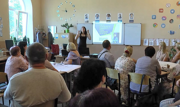 Тренерка з Києва Дар’я Демчук-Маригіна працює викладачами природничих дисциплін. Навчання проходять не лише вчителі ліцею №1, здобути нові знання прийшли педагоги з усіх шкіл Прилук.