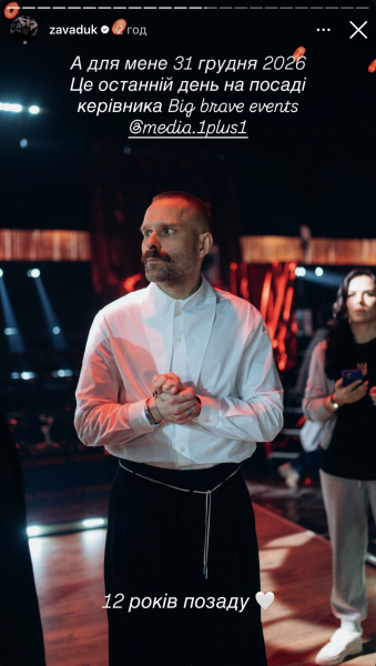 – А для мене 31 грудня 2026 (ймовірно, одруківка – мається на увазі 2025. – Ред). Це останній день на посаді керівника Big brave events. 12 років позаду. Це був неймовірний шлях. З унікальними людьми. Шлях, який сформував мене. Але далі мене чекає нова місія. Про яку я невдовзі зможу розказати, – розповів Завадюк.