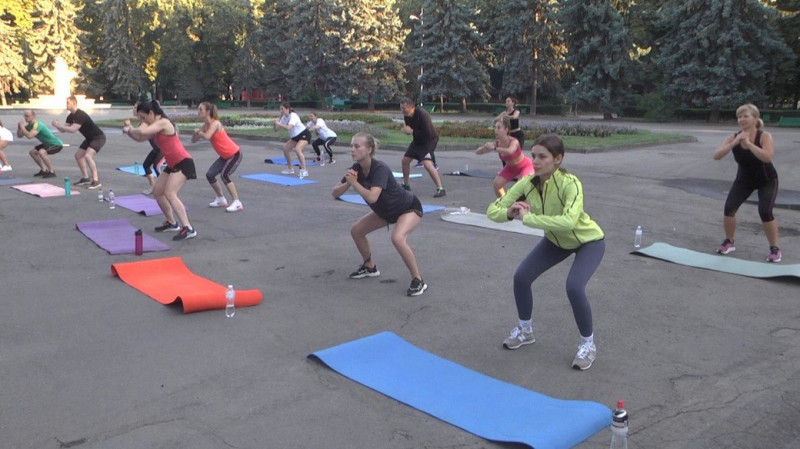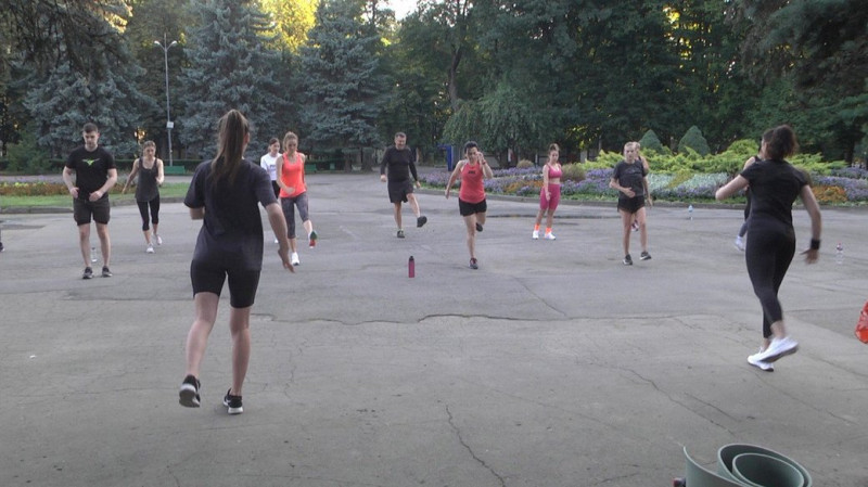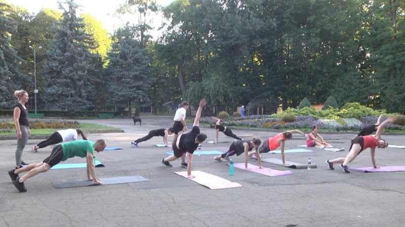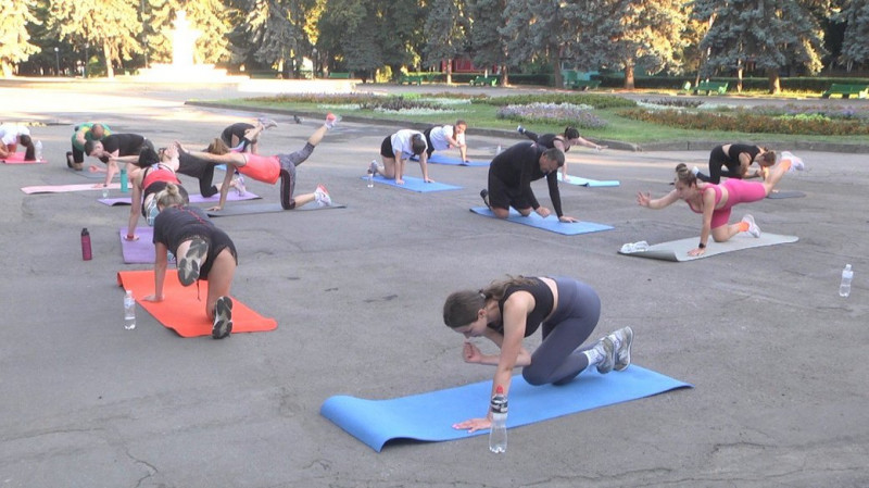На ранкову руханку просто неба збираються вже місяць. В середньому на тренування приходить до 30 людей. Заняття триває годину. Проходить на площі Фонтанній. Вправи підходять і дорослим, і дітям.