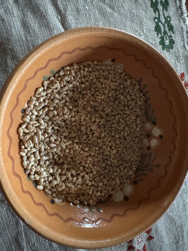 Варена пшениця для куті. Суспільне Полтава "Пшениця — це зерно багатства, зерно добра і збіжжя. Але не просто це була пшениця — це була обдирна пшениця, яку обдирали на спеціальних жорнах. Її заливали окропом десь на кілька годин, щоб вона набухла. А потім вже варили з неї кашу".
