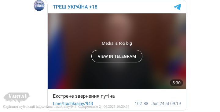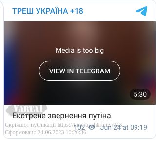 Сьогодні, 24 червня, президент РФ Володимр Путін виступив з екстреним зверненням по ТБ.