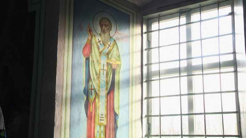 Намальована ікона на стіні у храмі, грудень 2025 року, Хмельниччина. Суспільне Хмельницький