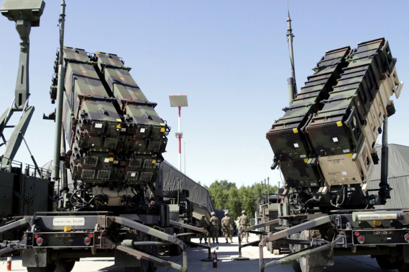 Фото: EPA/UPG Дві пускові установки зенітно-ракетних систем Patriot під час навчань протиповітряної оборони на авіабазі Сауляй, Литва