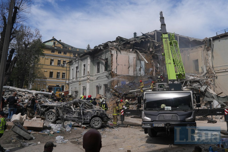 Фото: Інна Варениця Рятувальні роботи на місці ракетного удару по корпусу Охматдиту.