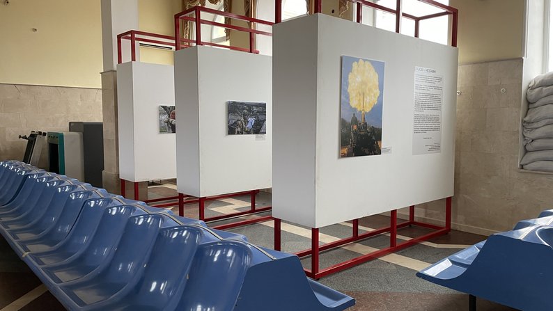 Херсон. Стенди зі світлинами виставки “Разом — незламні” на залізничному вокзалі, 18 січня 2023 Фото: Суспільне Херсон